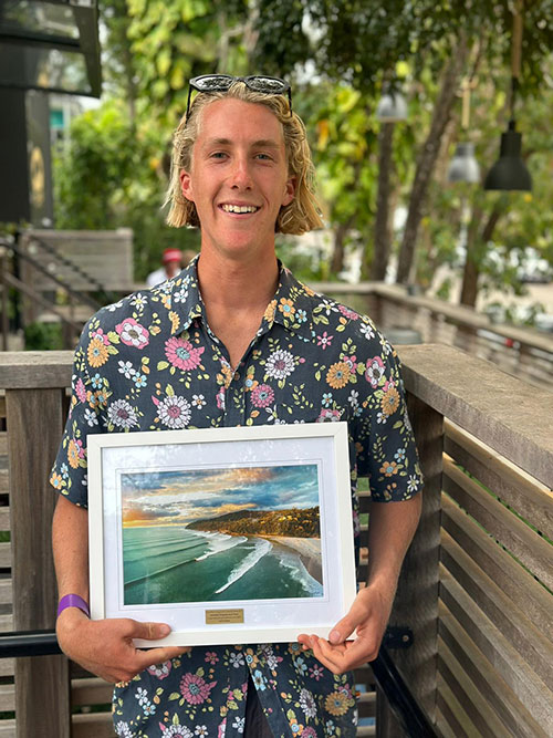 He is also often seen picking up rubbish and putting them in his pockets until after his surf & has also been involved in a number of beach cleans held during local events. As well as sharing the efforts of this preservation and respect for the environment amongst his peers.